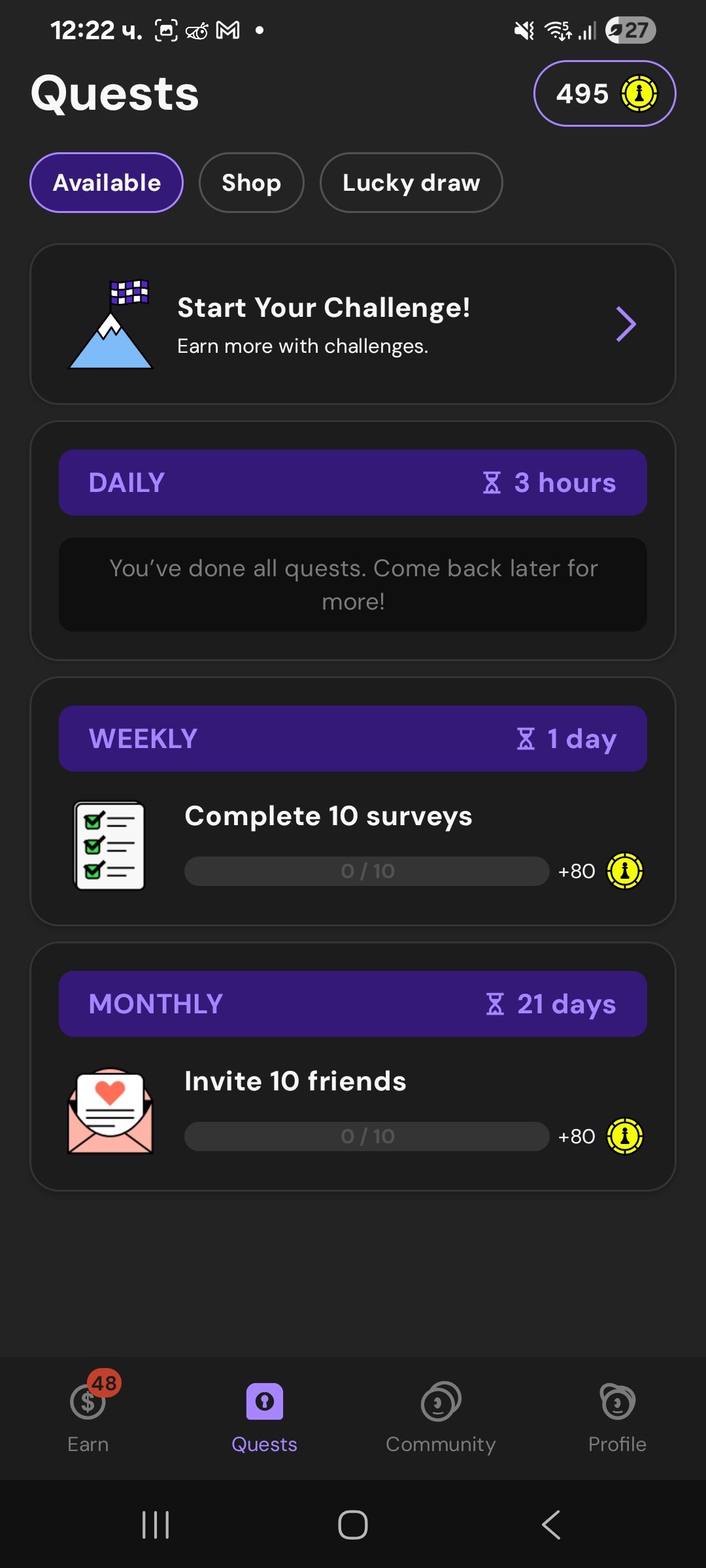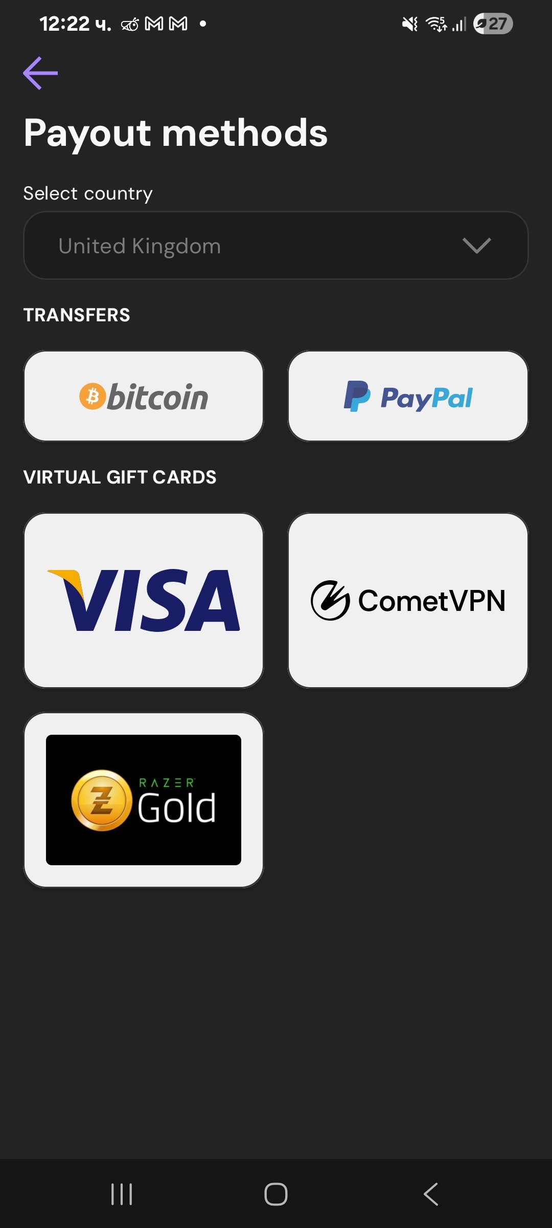 • Rewards Section – Where you redeem points for PayPal, Bitcoin, or gift cards.